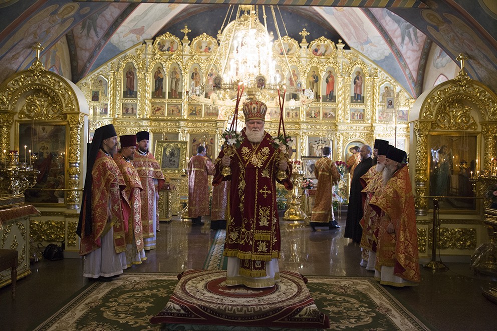 Обращаясь к молящимся в храме, Высокопреосвященнейший владыка поздравил всех с праздником обители: