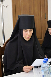 2. Настоятельница Лебедянского Свято-Троицкого епархиального женского монастыря игумения Гликерия (Соболева) представила собравшимся доклад на тему: «Старчество как плод духовной культуры монашеской жизни».