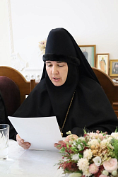 С приветственным словом к собравшимся обратилась руководитель епархиального отдела по монастырям, настоятельница Сезеновского Иоанно-Казанского женского монастыря игумения Феофания (Проценко).