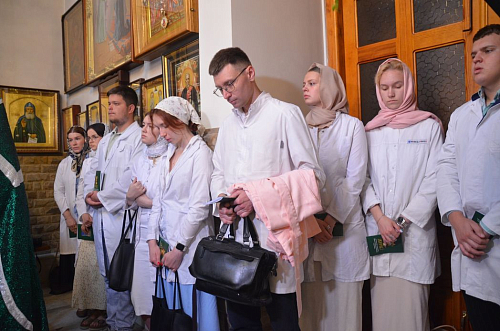 У раки с честными мощами святителя священник благословил крымских врачей, медсестер, работников здравоохранения, профессорско-преподавательский состав и студентов Медицинского института имени С.И. Георгиевского.