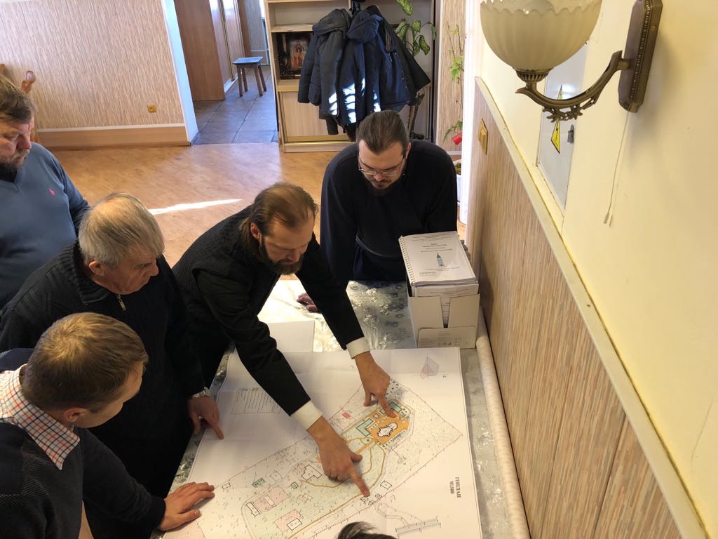 В рамках рабочей встречи состоялось обсуждение вопросов подъезда и отвода рабочей техники, мест складирования грунта, выравнивания ландшафта под будущую соборную площадь, складирования строительного материала. Грунт на территории обители не позволял возвести полноценный каменный храм. Специалисты строительной компании заверили, что учли все особенности грунтовой породы и что современные технологии, которые будут применяться в строительстве храма, позволят реализовать все тонкости уникального проекта.