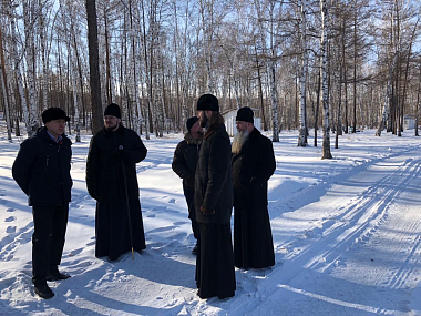 14 февраля 2018 года в Успенском мужском монастыре г. Читы состоялась встреча настоятеля монастыря игумена Софрония (Валова) с попечителем, прорабом и рабочими по вопросам организации и срокам начала строительства главного храма обители.