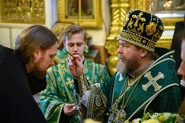 По запричастном стихе митрополит Тихон произнес проповедь для молящихся.