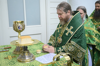 Во время богослужения митрополит Тихон совершил иноческие постриги послушника Александра (Ермакова) с сохранением имени Александр и послушника Алексея (Гринько) с наречением имени Макарий.
