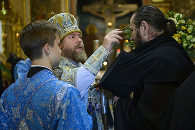 Во время богослужения митрополит Тихон совершил постриг во чтеца монаха Анатолия (Подоляна).