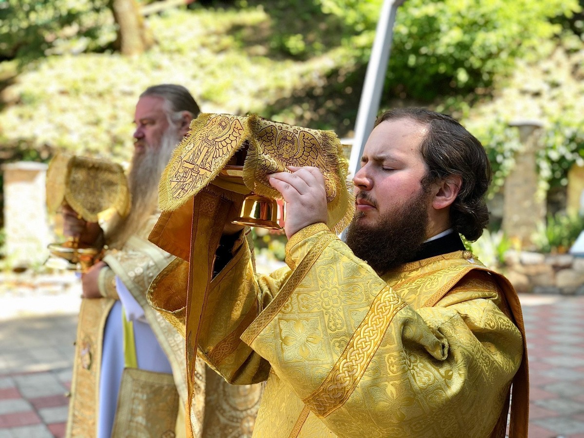 Божественную литургию в Летнем храме обители возглавил и. о. наместника иеромонах Михаил (Гичко) в сослужении братии в священном сане.
