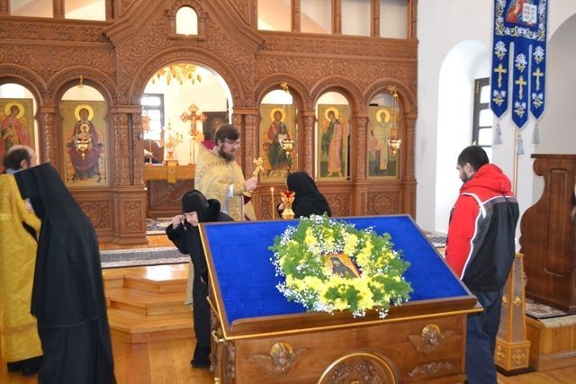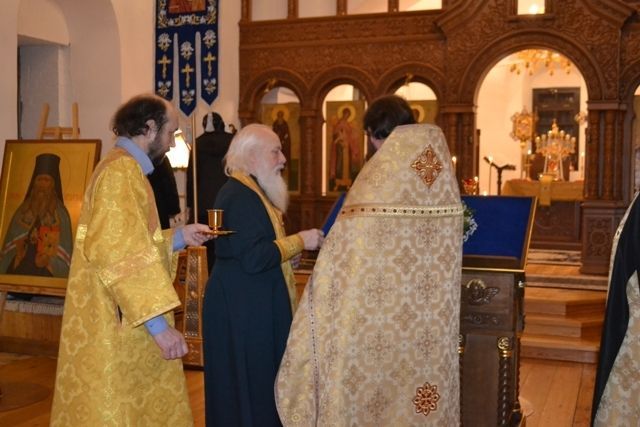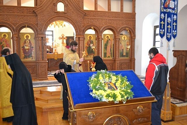 После заамвонной молитвы священномученику Игнатию были исполнены тропарь, кондак и величание. Перед образом святого была прочитана молитва.