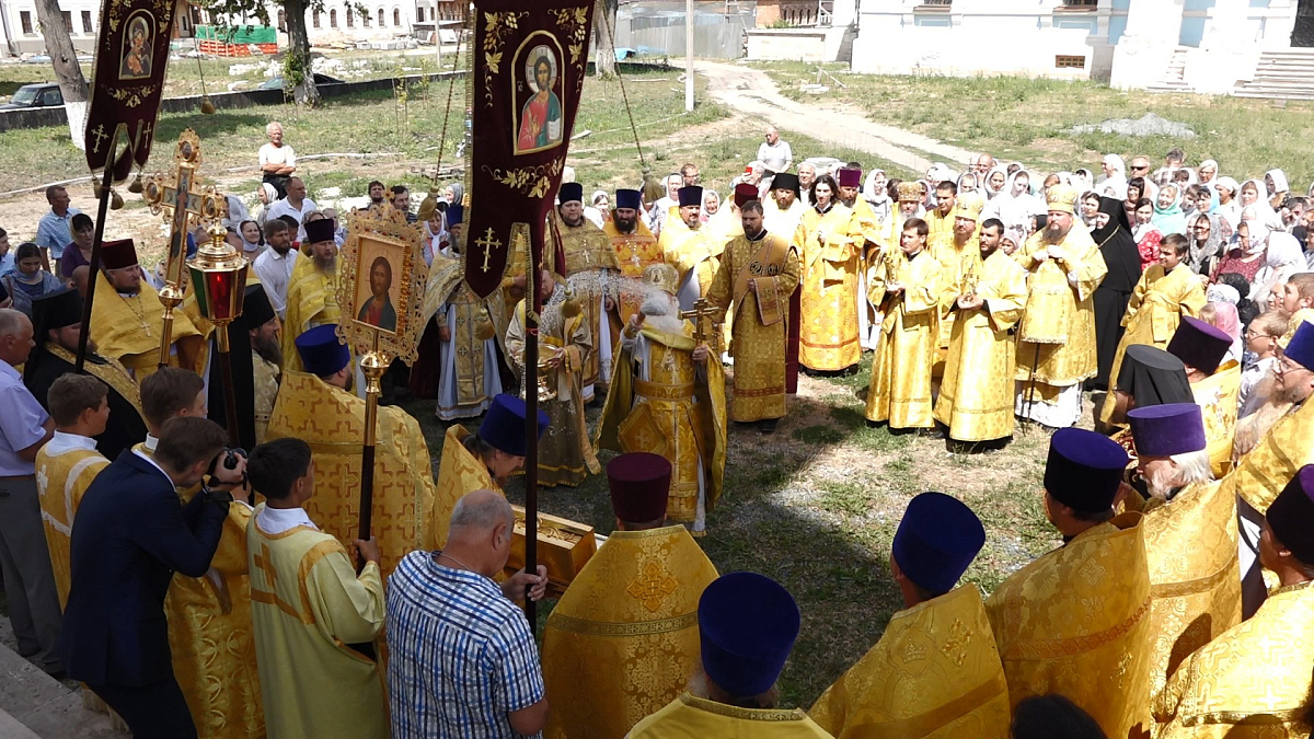 Праздник увенчался крестным ходом и освящением источника, расположенного возле Казанского собора. Святая вода стекает с мраморного креста. В жаркий июньский день после многочасовой службы паломники смогли освежиться этой живительной влагой и пополнить свои силы.