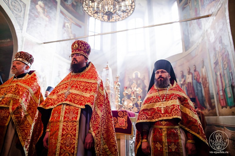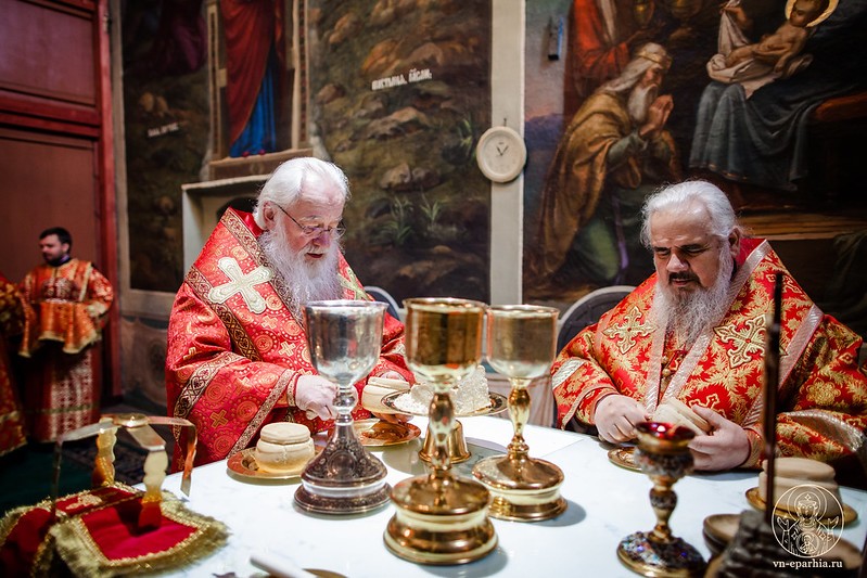 Архиереям сослужило духовенство Новгородской и Боровичской епархий.