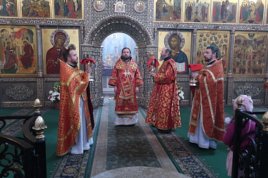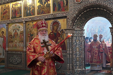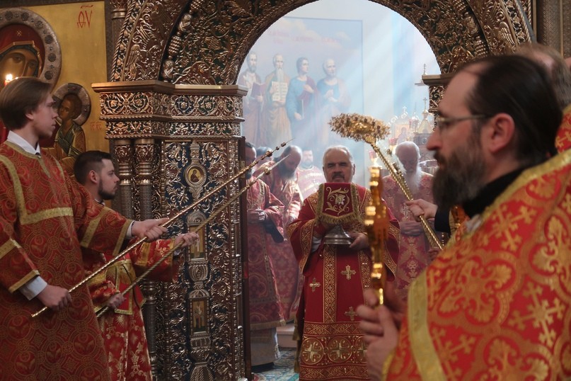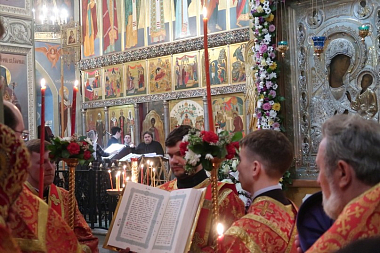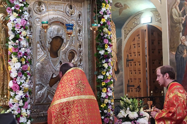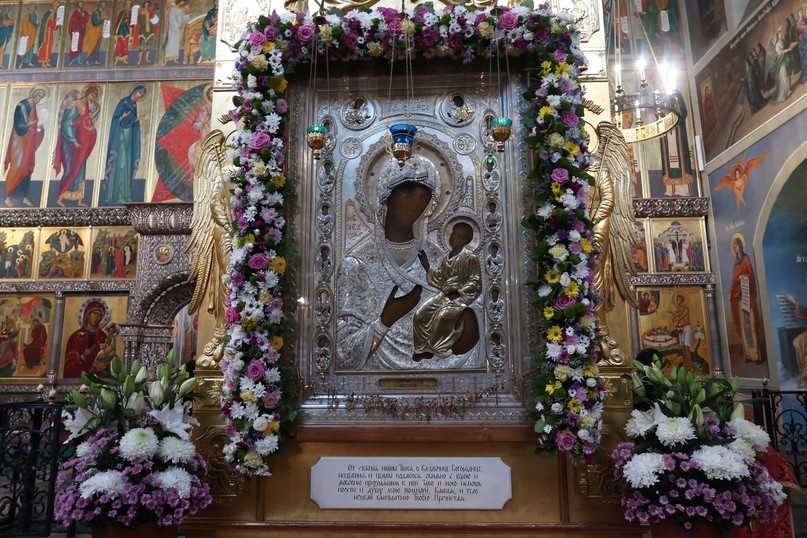 По окончании Божественной литургии были совершены крестный ход и славление перед Иверской иконой Божией Матери.