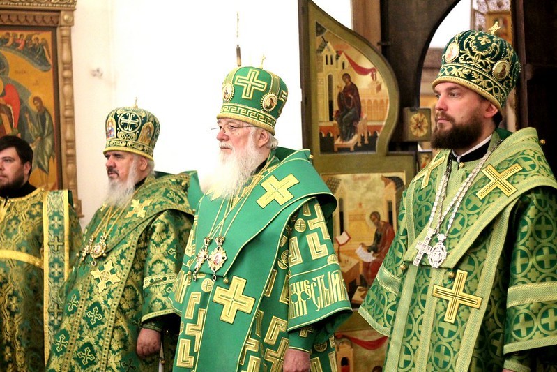 Богослужение сопровождалось пением сводного хора Свято-Юрьева монастыря и мужского хора Новгородского духовного училища под управлением регента диакона Андрея Каурова.