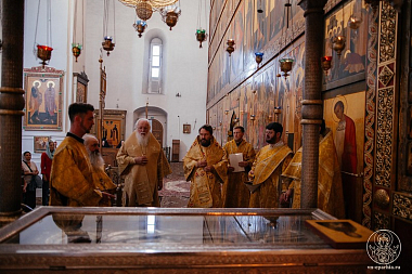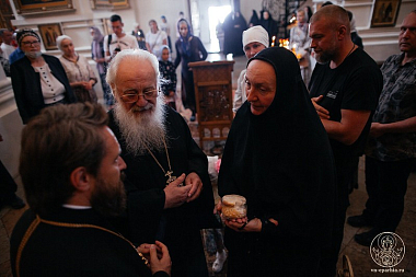По окончании Литургии было совершено славление перед ракой преподобного Варлаама Хутынского.