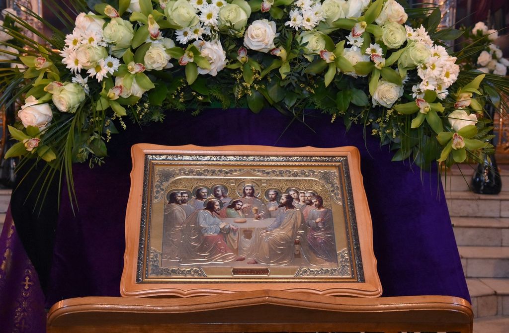 16 апреля 2020 года, в Великий Четверг, день воспоминания Тайной Вечери, епископ Усманский Евфимий, викарий Липецкой епархии совершил в Задонском Рождество-Богородицком мужском монастыре вечерню с Божественной литургией святителя Василия Великого.