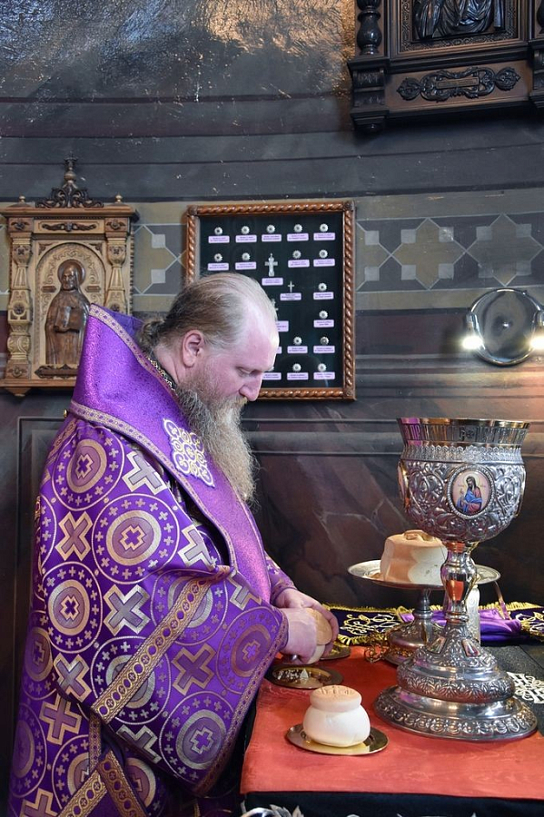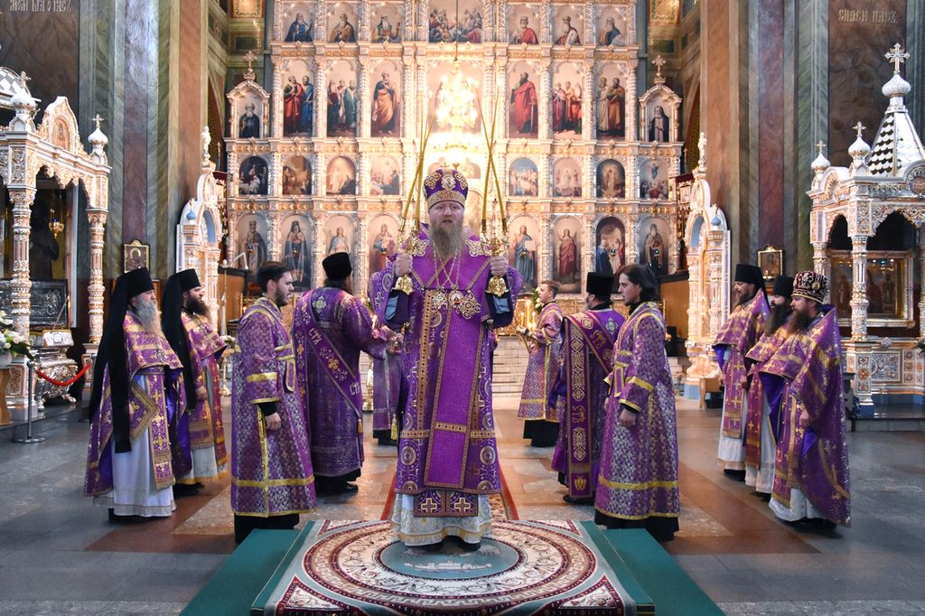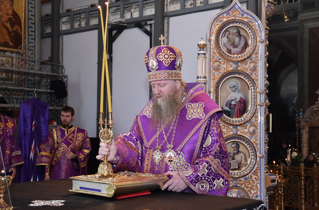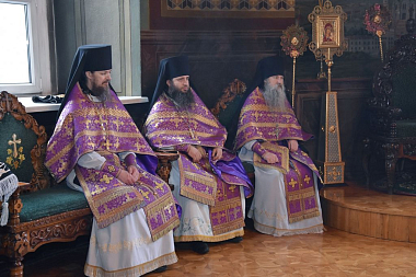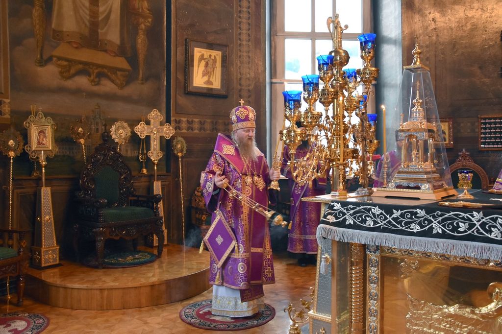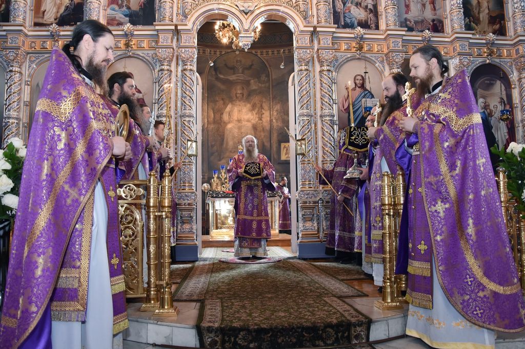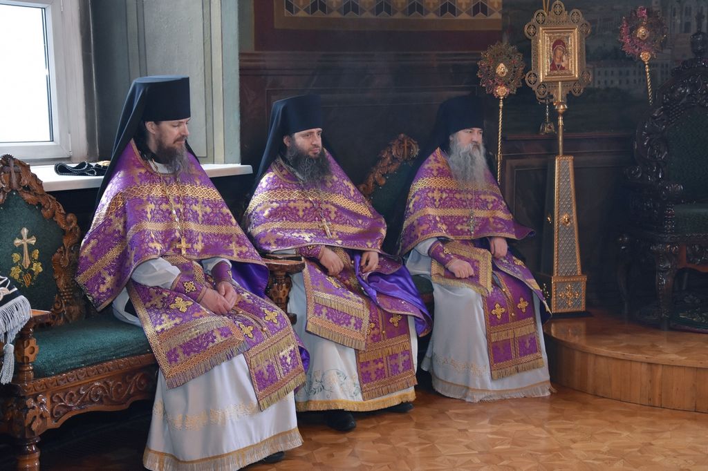 Во Владимирском соборе обители Его Преосвященству сослужили: архимандрит Трифон (Голубых), благочинный обители; игумен Савватий (Корнеев), иеромонахи: Иннокентий (Митин), Даниил (Ведмедь), Тихон (Дмитриев), Савва (Шевченко); иеродиаконы: Паисий (Боев), Антоний (Корнеев), Марк (Гречаный), Ираклий (Гарькавый), Александр (Мантров), Лаврентий (Подколзин); диакон Николай (Рошко), клирик обители.