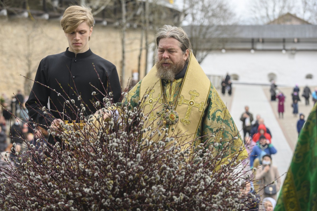 12 апреля 2020 года, в Неделю 6-ю Великого поста, ваий (цветоносную, Вербное воскресенье), праздник Входа Господня в Иерусалим, митрополит Псковский и Порховский Тихон совершил Божественную литургию в Свято-Успенском Псково-Печерском мужском монастыре.