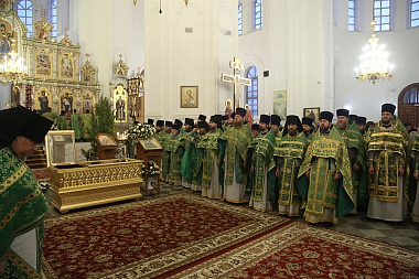 Богослужение проходило пред сенью, под которой покоятся святые мощи Небесного покровителя уральской земли – святого праведного Симеона Верхотурского.