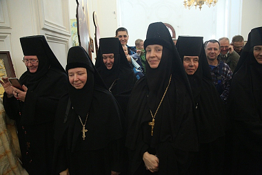 За богослужением молились настоятельница Александро-Невского Ново-Тихвинского женского монастыря в Екатеринбурге игумения Домника (Коробейникова), настоятельница Покровского женского монастыря в Верхотурье игумения Магдалина (Сулеменова), настоятельница Свято-Елисаветинского женского монастыря в Алапаевске игумения Смарагда (Зыкова), настоятельница Пантелеимоновского женского монастыря в Краснотурьинске монахиня Афанасия и насельницы обителей.