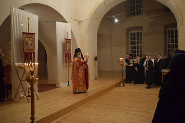 Настоятель Архиерейского подворья иеромонах Феодосий (Писарев) совершил малое освящение храма. Затем служились все уставные пасхальные богослужения: полунощница, пасхальная заутреня и Божественная литургия святителя Иоанна Златоуста.