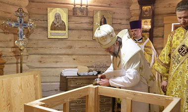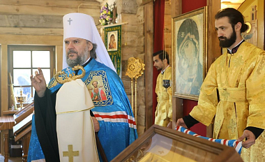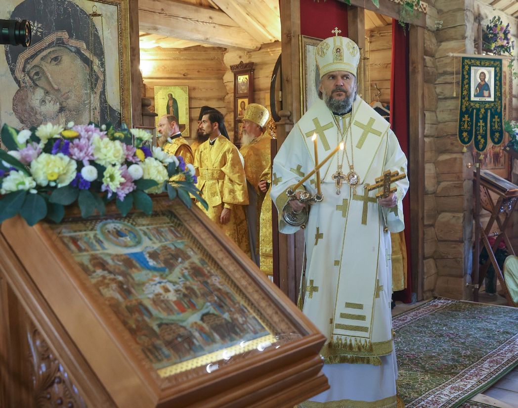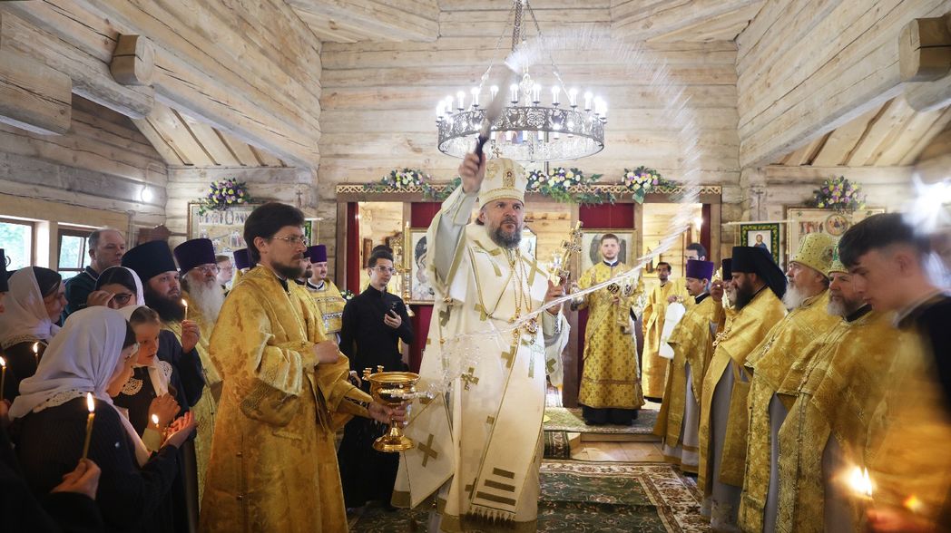 Архипастырь поздравил всех с освящением новой монастырской церкви и пожелал молитв и покровительства всех русских святых.
