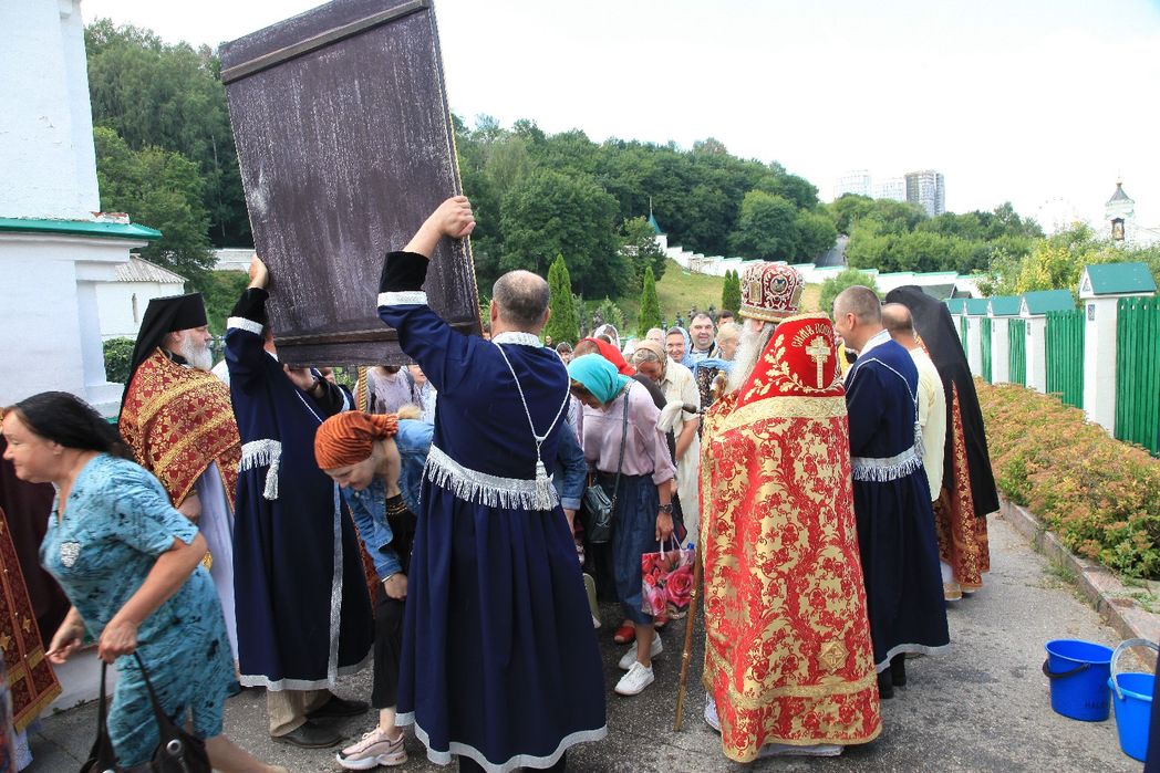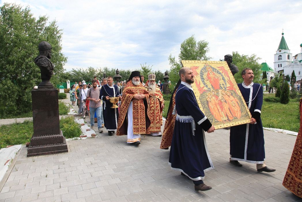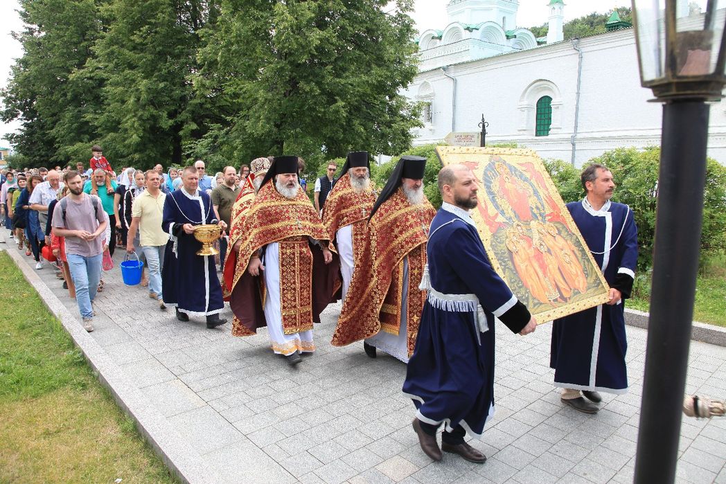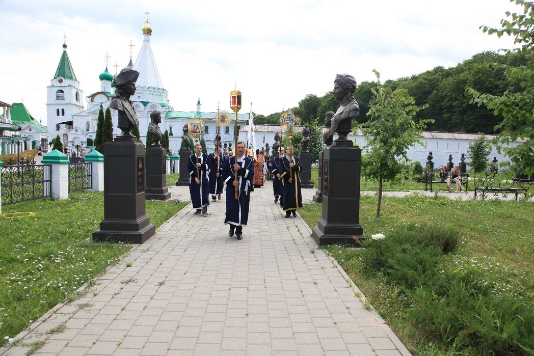 По окончании богослужения был отслужен молебен перед иконой святых Царственных страстотерпцев и совершен с ней крестный ход с участием Нижегородского Свято-Георгиевского Общества Хоругвеносцев вокруг храмов обители и по Царской Аллее при большом стечении богомольцев.