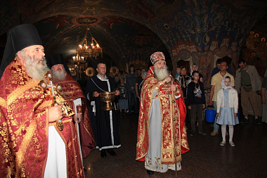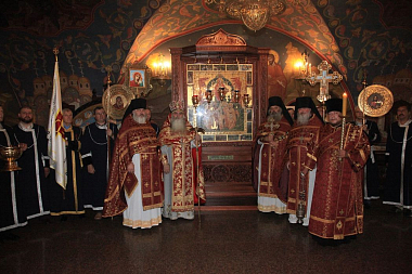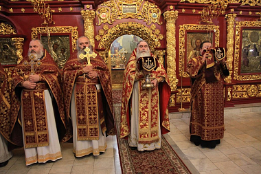 В этот день Божественную литургию возглавил игумен обители архимандрит Тихон (Затёкин) в сослужении игумена Вассиана (Бирагова), игумена Олега (Осипова), иеромонаха Симеона (Вернослова), иеродиакона Евстафия (Полякова) и иеродиакона Антония (Затёкина).