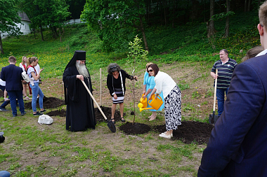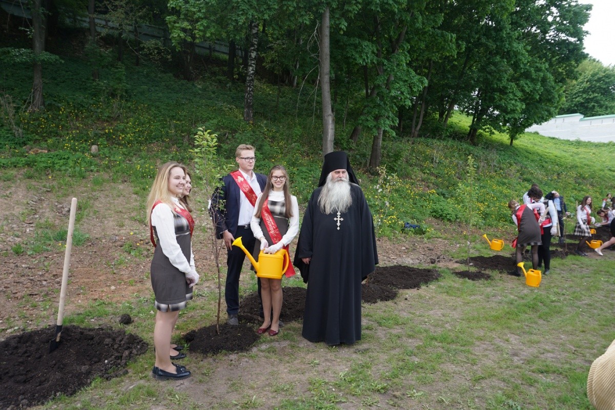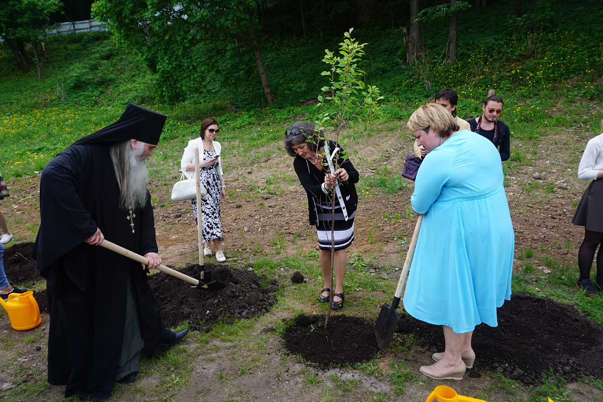 После богослужения отец Тихон обратился к присутствующим. Поблагодарив их за благое начинание, он окропил святой водой молодые деревца и заранее выкопанные лунки. Вместе с директором лицея настоятель обители также посадил дерево. После посадки было сделано памятное фото.