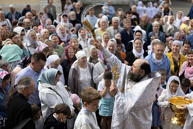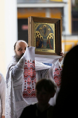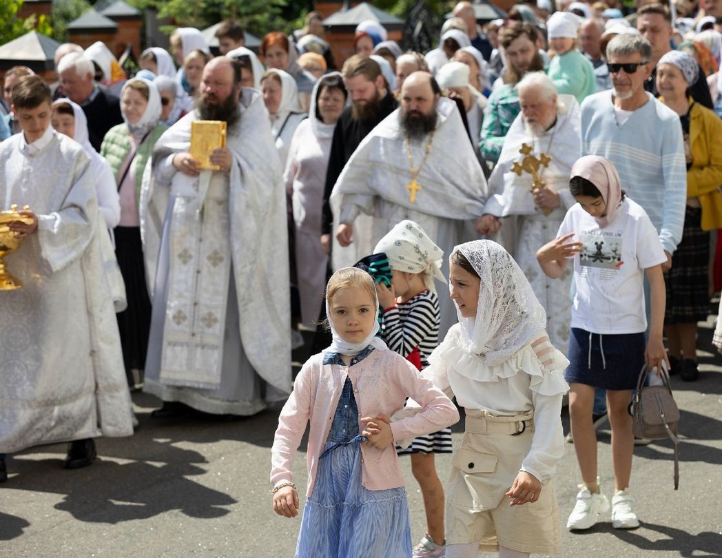 В конце службы духовенство и миряне совершили крестный ход вокруг храмов обители.