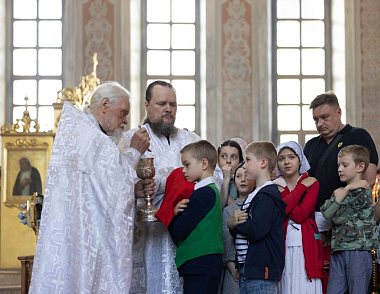 2 июня 2022 года в Спасском соборе мужского монастыря Подольской епархии Вознесенской Давидовой пустыни была совершена праздничная Божественная Литургия, которую по благословению благочинного монастырей Подольской епархии Московской митрополии игумена Сергия (Куксова) возглавил благочинный пустыни иеромонах Гурий (Карпов).