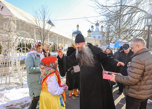 После молитвы игумен Сергий благословил раздачу угощений и поблагодарил всех, кто предоставил вкусные и ароматные блины, а их напекли к празднику более 12 тысяч штук.