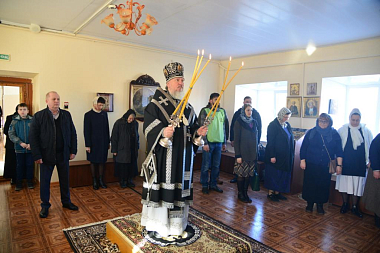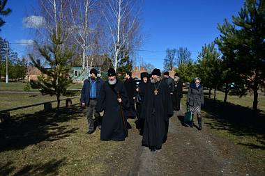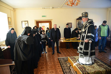 За богослужением молились старшая сестра православной общины Севского Спасо-Преображенского монастыря с сестрами монахиня Макария (Швец), настоятельница Севского Кресто-Воздвиженского монастыря игумения Афанасия (Личаева), паломники обители.