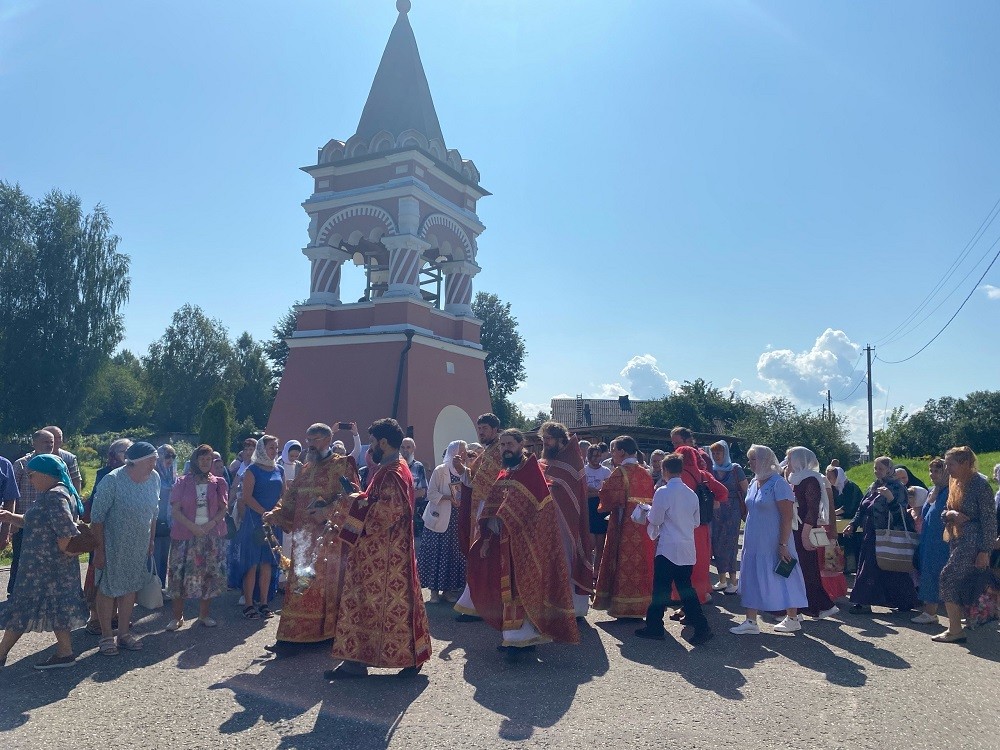 По окончании Литургии верующие прошли традиционным крестным ходом к источнику с купелью Целителя Пантелеимона, где был совершен водосвятный молебен.