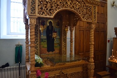 По заамвонной молитве епископ Серафим совершил праздничный крестный ход в Макариевской соборный храм обители, где пред мощами преподобного Макария было совершено славление.