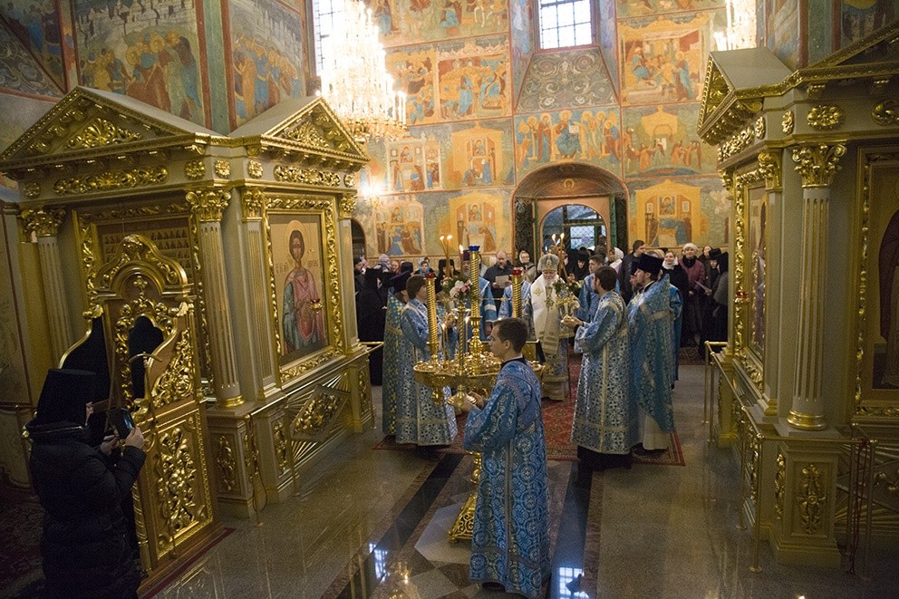 По окончании Литургии митрополит Вадим вместе с духовенством, настоятельницей монастыря игуменией Варварой, сестрами обители и паломниками совершили славление празднику в летнем соборном храме, освященном в честь Введения во храм Пресвятой Богородицы.