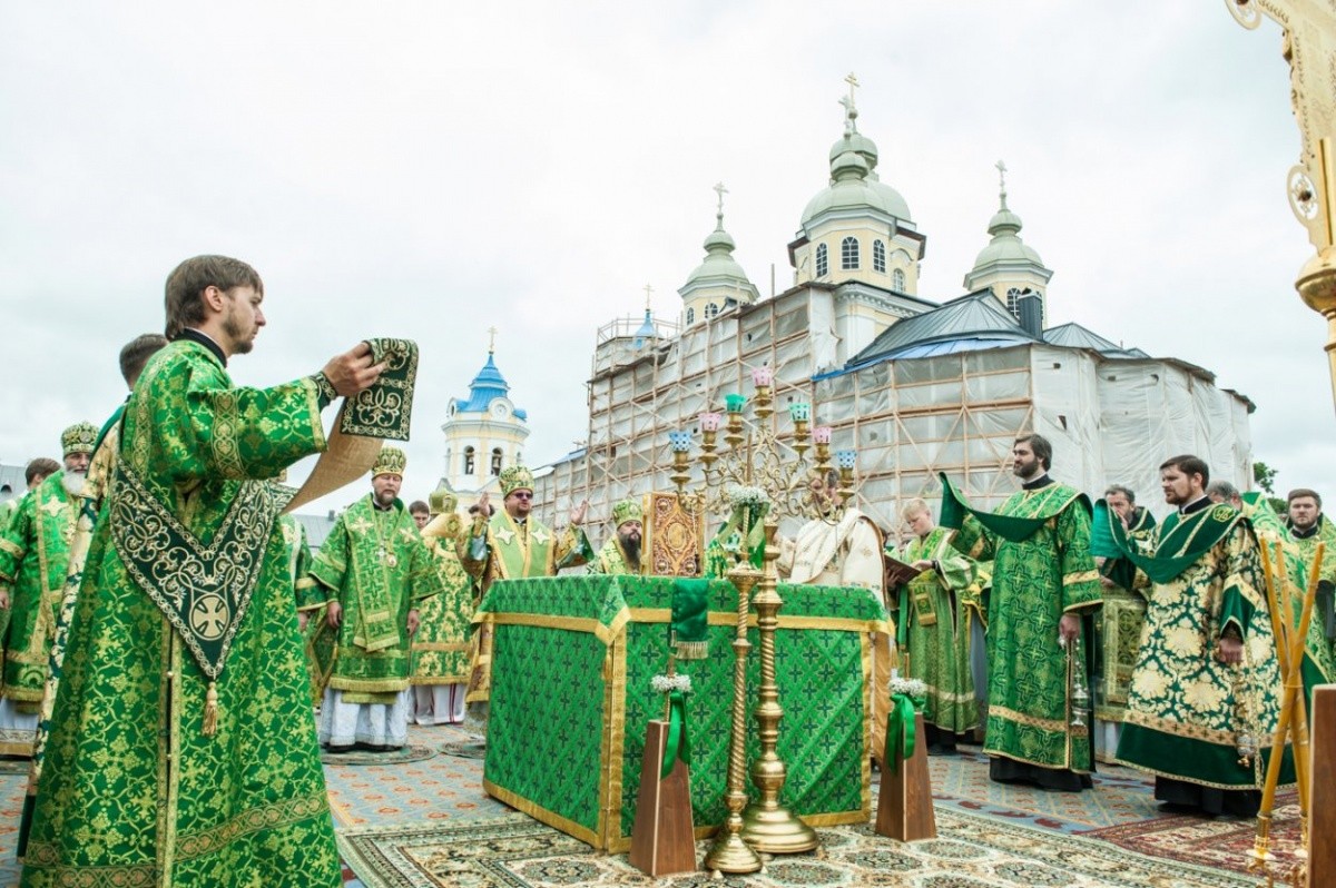 Утром 25 июня архиереи отслужили Божественную литургию под открытым небом около Рождество-Богородичного собора обители.
