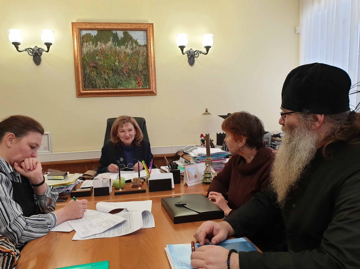 В совещании приняли участие директор Департамента культуры Ярославской области М.В. Васильева и сотрудники Департамента, сотрудники Ярославского художественного музея и настоятель Кирилло-Афанасиевского мужского монастыря игумен Никодим (Федоров).