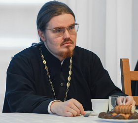 Доклад «Внутренняя брань, как путь к духовному просвещению и спасению» был сделан клириком Богоявленского Аврамиевого монастыря г. Ростова Великого иеромонахом Сергием (Коленцовым). Отец Сергий рассказал о способах ведения духовной борьбы, к которым относятся осознание собственной греховности, покаяние, молитва, стяжание добродетелей.