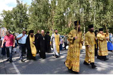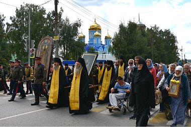 Объединившись в одно молитвенное шествие, богомольцы под пение акафиста святителю Тихону направились в святую обитель, прославленную трудами и подвигами угодника Божия.