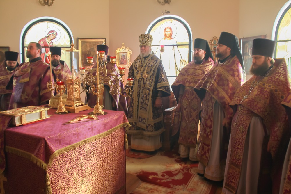 Его Высокопреосвященству сослужили наместник Курской Коренной Рождества Пресвятой Богородицы мужской пустыни игумен Серафим (Котельников), благочинный Золотухинского церковного округа протоиерей Петр Юрочко, иеромонах Филипп (Сапронов), клирики монастыря и Золотухинского благочиния.