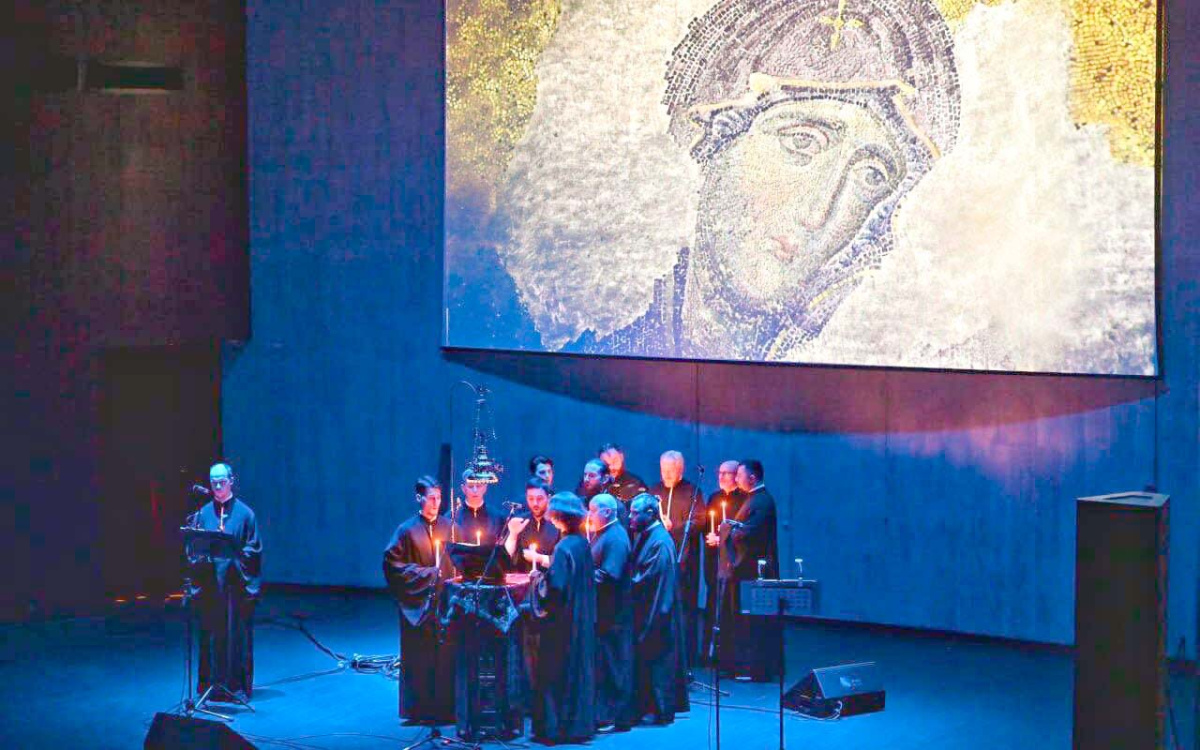 В завершение концерта коллектив «Аксион Естин» исполнил знаменитое греческое песнопение «Агни Парфене» (Марие, Дево чистая).