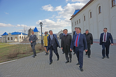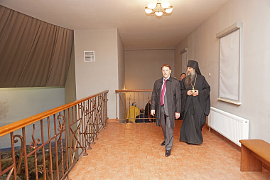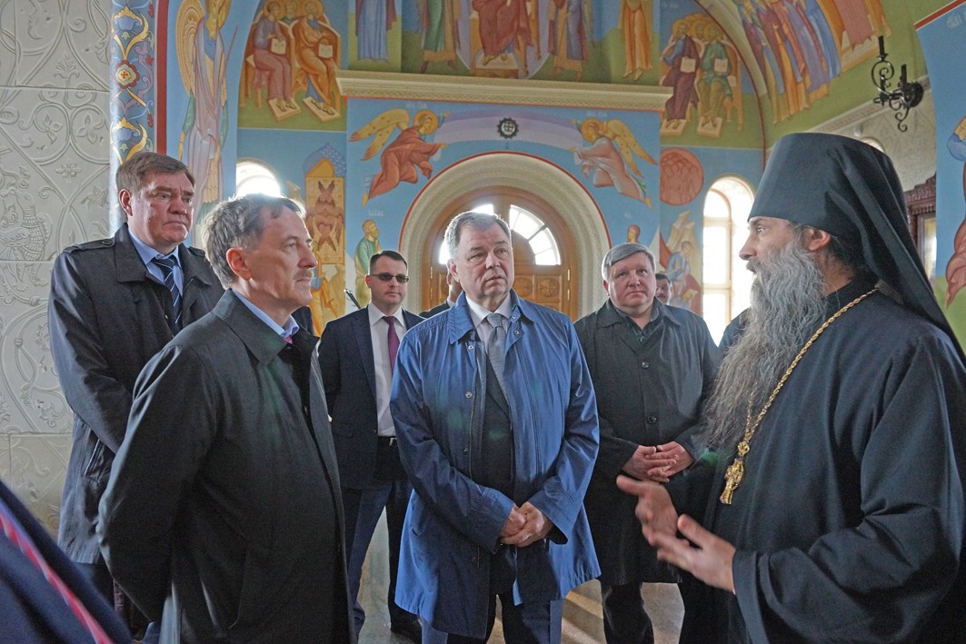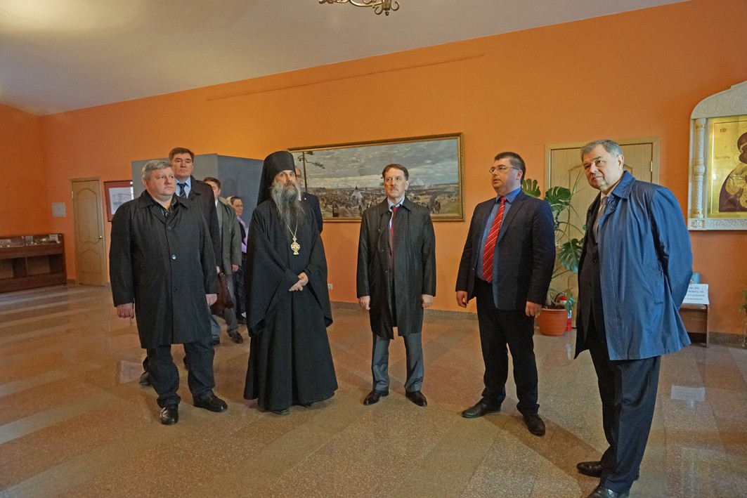 В сопровождении наместника монастыря архимандрита Тихона (Завьялова) гости сначала посетили Владимирский храм скита, затем музей-диораму и смотровую площадку на башне музея-диорамы, где осмотрели окрестности Великого стояния на Угре. Увиденное было высоко оценено всеми, о чем в благодарственном отзыве в книге почетных посетителей написал Алексей Васильевич Гордеев.