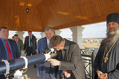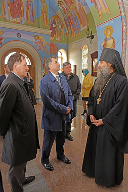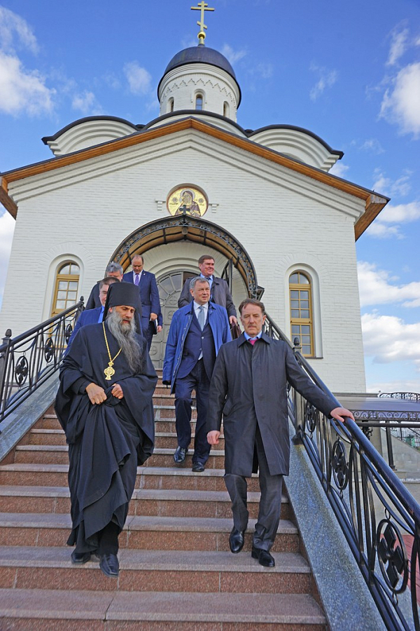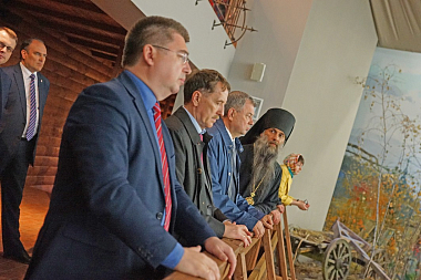 Полномочный представитель Президента РФ в ЦФО А.В. Гордеев с губернатором Калужской области А.Д. Артамоновым и другими высокопоставленными лицами посетили Владимирский скит Калужской Свято-Тихоновой мужской пустыни и музей-диораму «Великое стояние на Угре 1480 года».