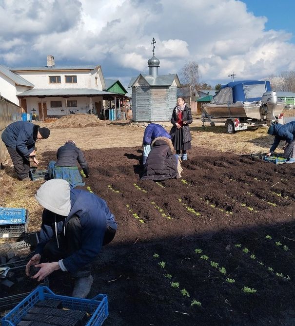 Каждый год на каникулах воспитанники Обители милосердия приезжают в монастырь помолиться и помочь братии в полевых работах. В этот раз ребята занимались посадкой лука и рассады овощных культур на грядках Псково-Печерской обители.