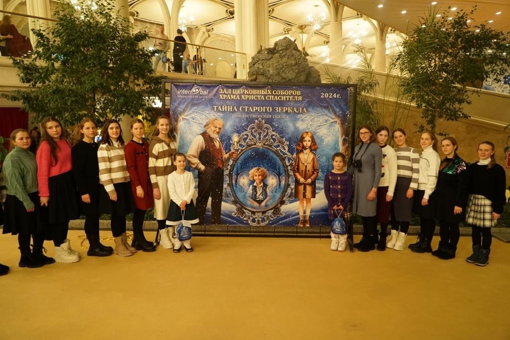 7 января 2024 года воспитанницы детского православного пансиона «Отрада» при Свято-Никольском Черноостровском женском монастыре города Малоярославца Калужской области посетили Патриаршую елку в Храме Христа Спасителя.