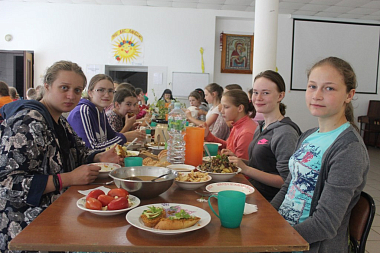 Смена в «Златоусте» получилась специализированная и была практически полностью отдана пансиону «Отрада» в полном составе. Вместе с воспитанницами «Отрады» в «Златоусте» отдыхали студентки Центра православных медиа Российского государственного социального университета – выпускницы «Отрады», проживающие в настоящее время при монастыре.