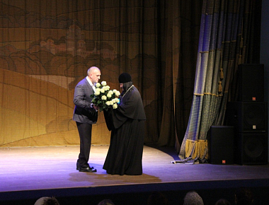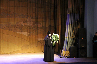Перед началом представления перед собравшимися зрителями выступил мэр Малоярославца Р.С. Саидов, который поблагодарил монастырь и его настоятельницу игумению Николаю (Ильину) за социальное служение и работу по духовно-нравственному и патриотическому воспитанию подрастающего поколения и вручил Ее Высокопреподобию букет цветов и подарки.