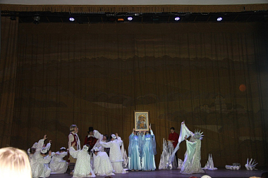 Участники спектакля воспитанницы детского православного пансиона «Отрада» очень серьезно готовились к представлению: более месяца репетировали с профессиональным режиссером и преподавателем актерского мастерства из Обнинска Юлией Носовой, вместе с насельницами Свято-Никольского Черноостровского женского монастыря готовили костюмы, реквизит, декорации, звуковое и световое сопровождение, поэтому спектакль на сцене киноцентра выглядел еще более внушительно, чем на первых представлениях в Большой трапезной монастыря.