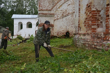 15 июля 2020 года в восстанавливаемом Михайло-Архангельском мужском монастыре Великого Устюга прошел трудовой десант.