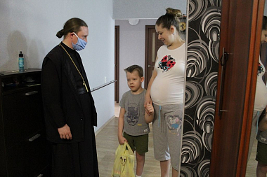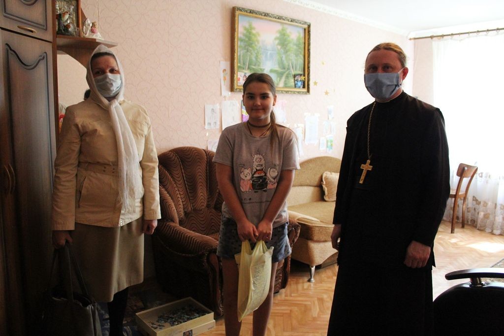 В рамках акции были закуплены канцелярские товары (альбомы, фломастеры, карандаши, пластилин), сформированы подарочные наборы, которые отец Агафангел, благословляя, лично вручил детям на дому (поадресно) с пожеланиями здоровья и помощи Божией. Подарочные наборы получили 20 семей.