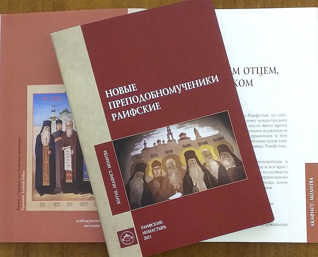 В сборник включены «Акафист и молитвы...» преподобным отцам, новомученикам Раифским. Обычно имя автора акафиста не указывают, но, как сообщает издательский коллектив, монастырю лично известен человек, который в молитвах проводил время при его написании. Акафист составлен под редакцией почившего сегодня насельника монастыря схиигумена Сергия (Златоустова).