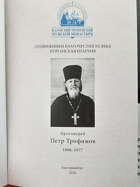 Вторая книга – «Протоиерей Петр Трофимов» – вышла в серии «Подвижники благочестия ХХ века, Курганская епархия». Она посвящена памяти русского священника протоиерея Петра Трофимова (1886–1977), которому судьбою Божией выпало нести свое пастырское служение в трагический период ХХ века. В этой работе, основанной на воспоминаниях очевидцев и архивных материалах, отец Афанасий сделал попытку «зафиксировать и показать предание зауральской православной жизни, еще совсем близкой нам по времени, но весьма важной для примера и осмысления новому поколению христиан».